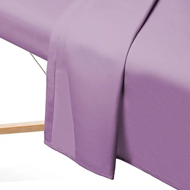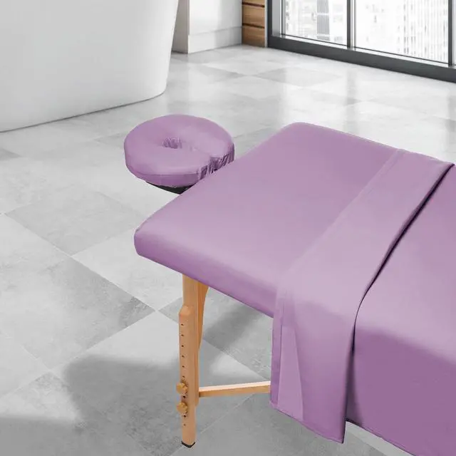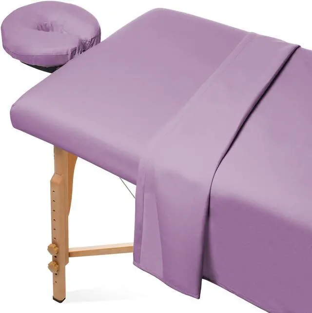 Give your clients a massage to remember every time you use these Saloniture massage table sheets (table not included). These soft yet incredibly durable sheets made of 100% ultra-light microfiber material feel great against the skin, providing a luxuriously silky, comfortable experience. Fast-drying, stain-resistant and wrinkle-resistant, these microfiber sheets are constructed to last, ensuring durability through repeated washings. Complete 3-piece set includes a fitted sheet, flat sheet and fitted face cradle cover designed to fit almost any face crescent pad. Complete set includes a 61" x 100" flat sheet, 36" x 77" x 7" fitted sheet, and 13" x 13" x 5" fitted face rest cover.