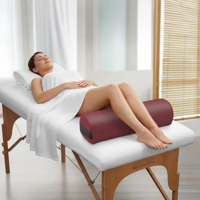 Saloniture 3/4 Jumbo Round Massage Table Bolster Pillow Pad - 26 x 9 x 6-1/4 Inch - Burgundy