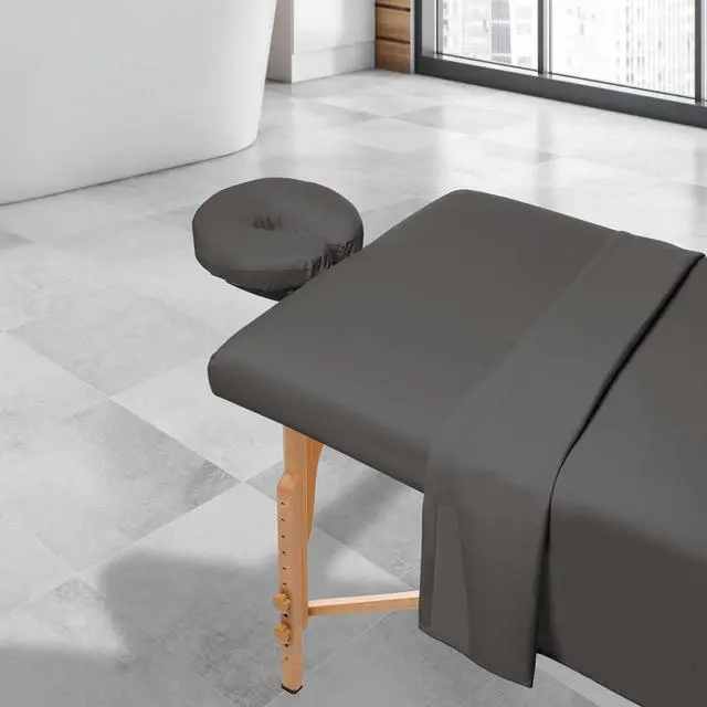 Give your clients a massage to remember every time you use these Saloniture massage table sheets (table not included). These soft yet incredibly durable sheets made of 100% ultra-light microfiber material feel great against the skin, providing a luxuriously silky, comfortable experience. Fast-drying, stain-resistant and wrinkle-resistant, these microfiber sheets are constructed to last, ensuring durability through repeated washings. Complete 3-piece set includes a fitted sheet, flat sheet and fitted face cradle cover designed to fit almost any face crescent pad. Complete set includes a 61" x 100" flat sheet, 36" x 77" x 7" fitted sheet, and 13" x 13" x 5" fitted face rest cover.