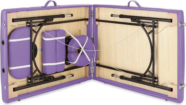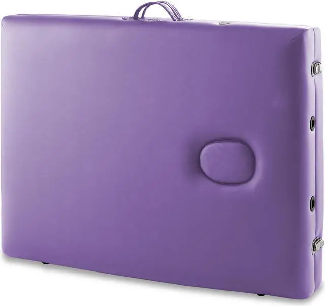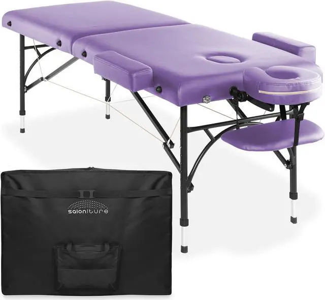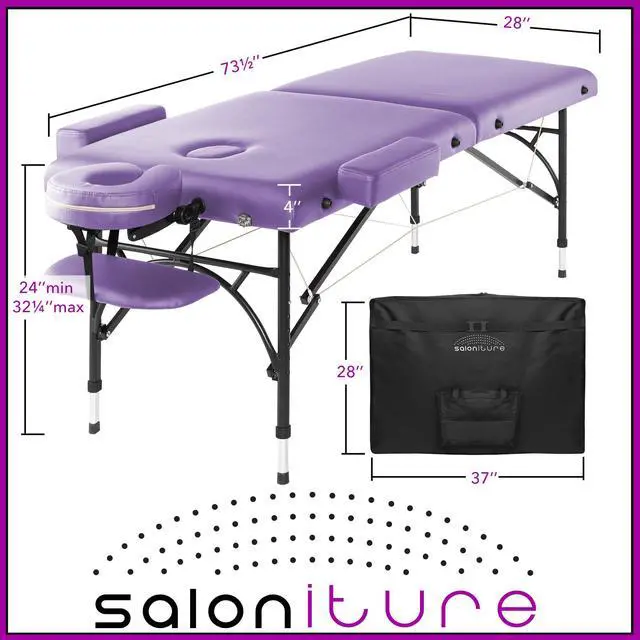 Saloniture Professional Portable Lightweight Bi-Fold Massage Table with Aluminum Legs - Includes Headrest, Face Cradle, Armrests and Carrying Case - Lavender