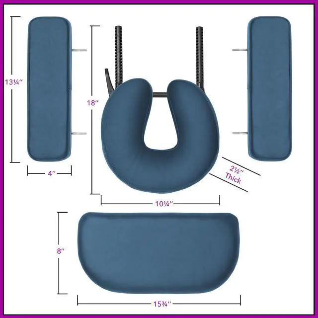 Face cradle measures 10" wide x 10" long x 3" thick.