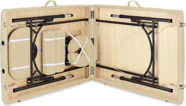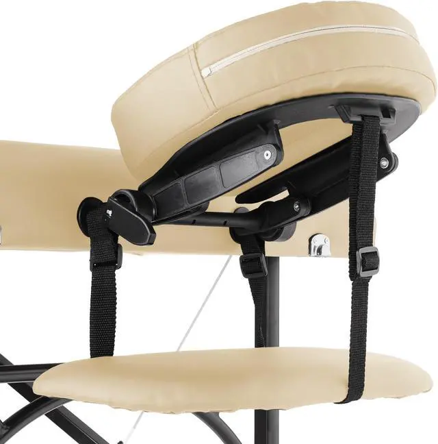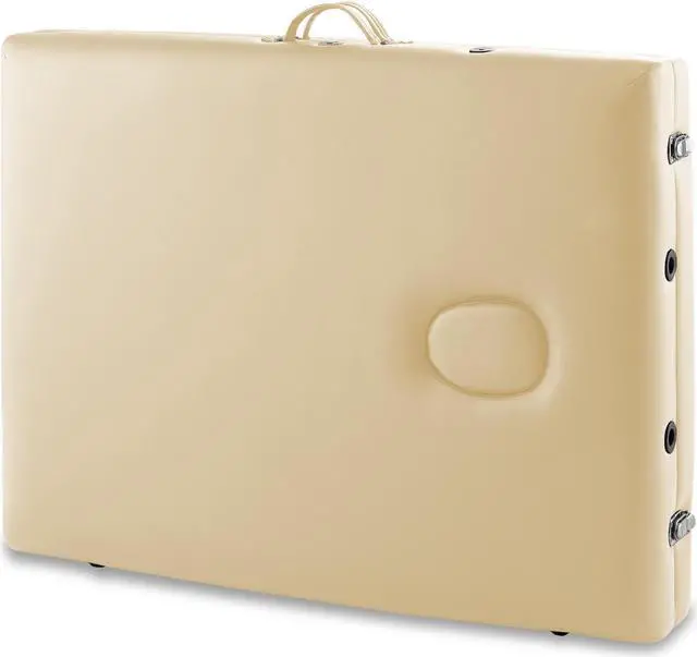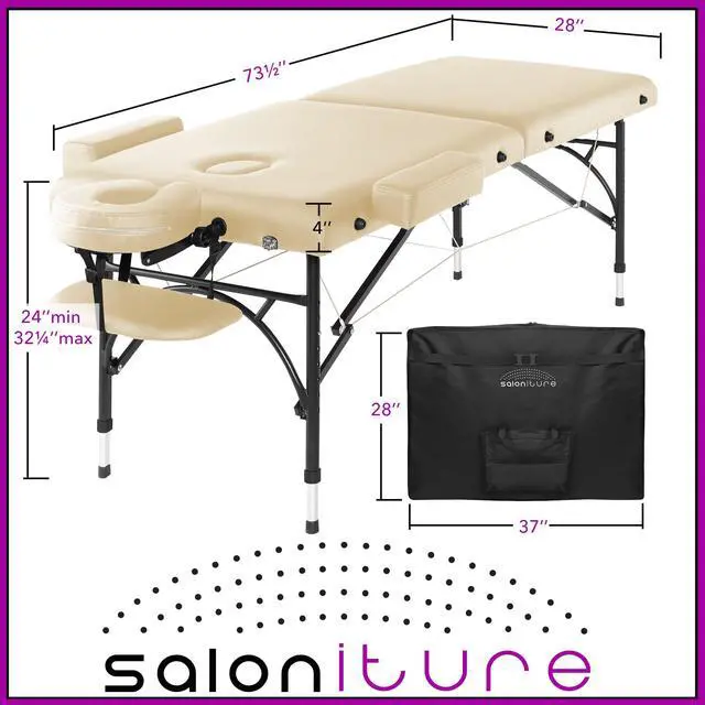 This Saloniture portable massage table combines luxurious comfort in a convenient, fold-and-carry design ideal for both certified massage therapists, as well as at-home bodywork enthusiasts. The table features professional-grade craftsmanship, including a sturdy hardwood frame along with aluminum push-button adjustable legs which offer quick, easy and accurate height adjustment. Its support cables are composed of heavy-duty steel providing solid support for up to 450 pounds.