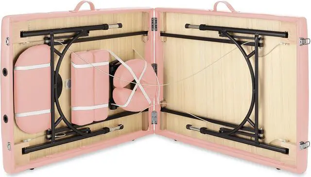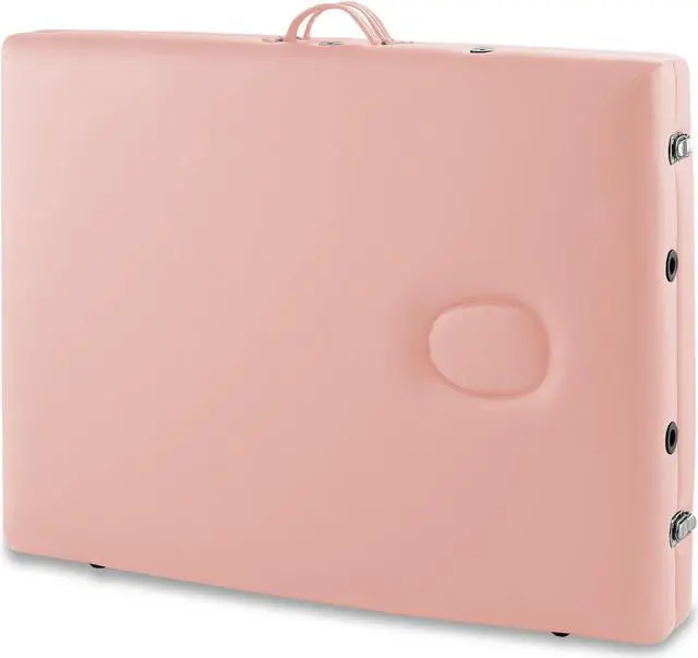 Saloniture Professional Portable Lightweight Bi-Fold Massage Table with Aluminum Legs - Includes Headrest, Face Cradle, Armrests and Carrying Case - Pink