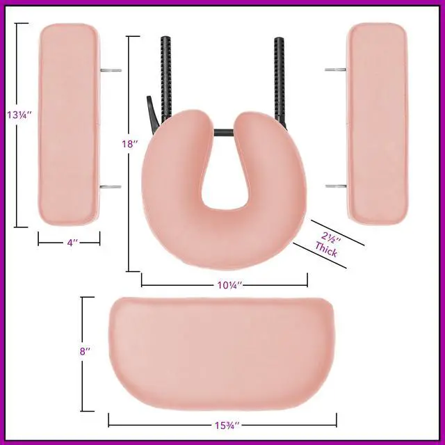 Face cradle measures 10" wide x 10" long x 3" thick.