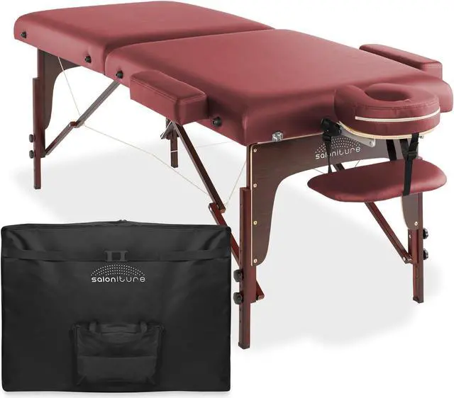 Combining affordable value with performance, the Saloniture portable all-inclusive folding massage table package offers a complete massage solution. Includes a professional grade massage table, deluxe adjustable headrest, armrests, and a heavy-duty, nylon carry case.