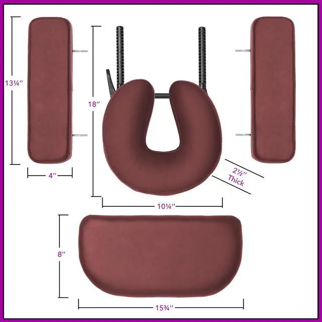 Face cradle measures 10-1/4" wide x 10" long x 2-1/2" thick