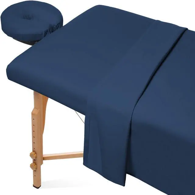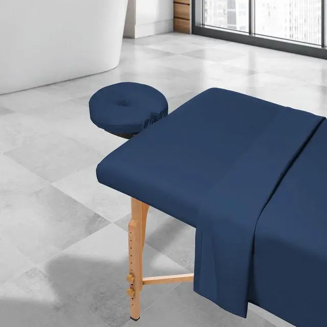 Give your clients a massage to remember every time you use these Saloniture massage table sheets (table not included). These soft yet incredibly durable sheets made of 100% ultra-light microfiber material feel great against the skin, providing a luxuriously silky, comfortable experience. Fast-drying, stain-resistant and wrinkle-resistant, these microfiber sheets are constructed to last, ensuring durability through repeated washings. Complete 3-piece set includes a fitted sheet, flat sheet and fitted face cradle cover designed to fit almost any face crescent pad. Complete set includes a 61" x 100" flat sheet, 36" x 77" x 7" fitted sheet, and 13" x 13" x 5" fitted face rest cover.