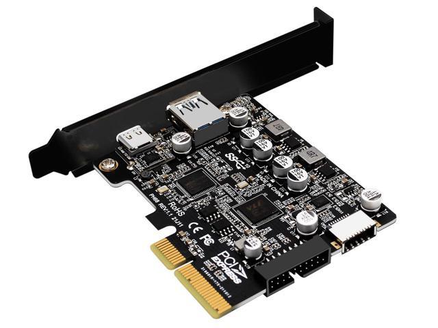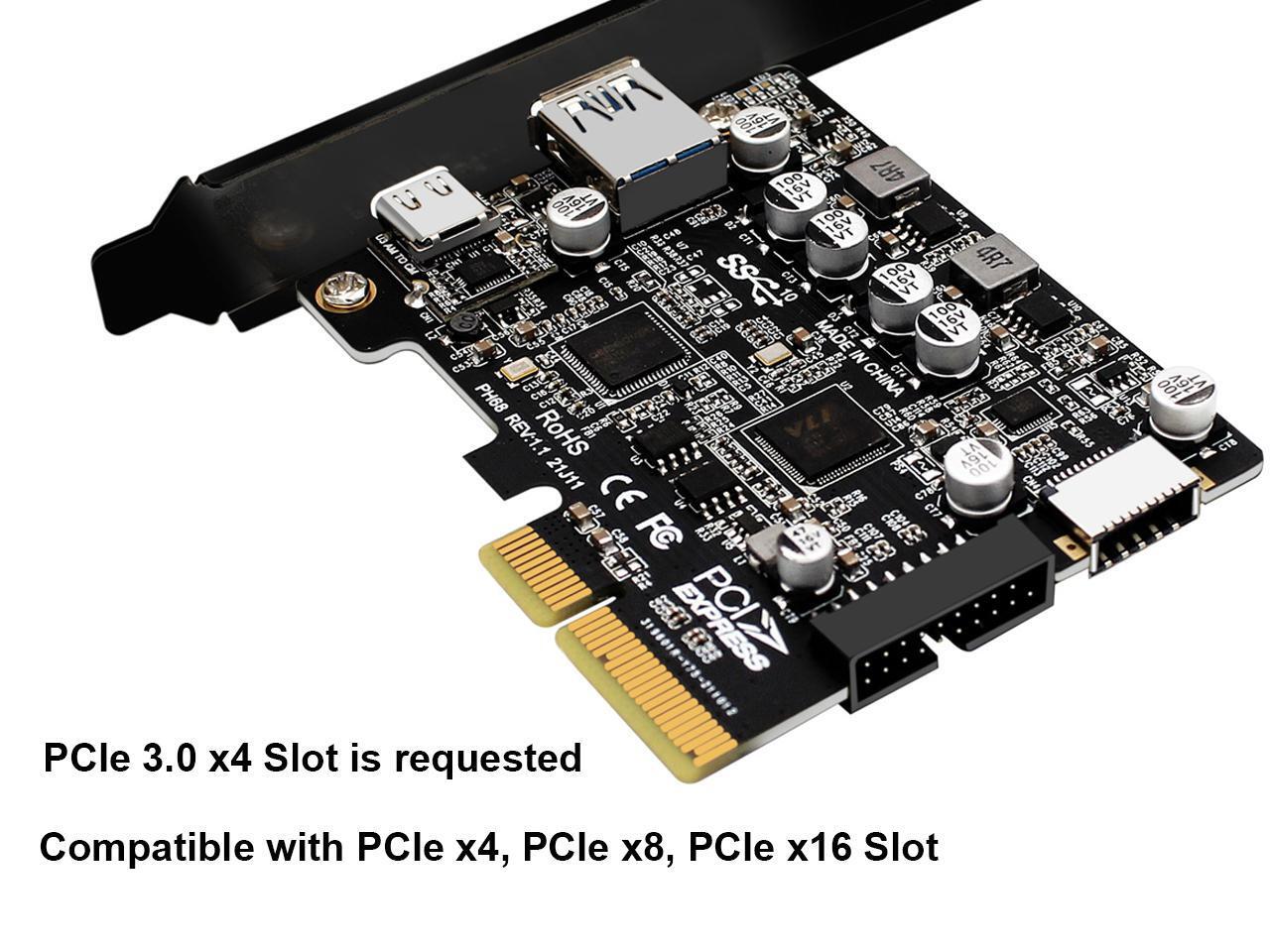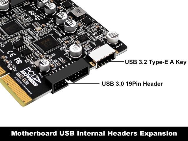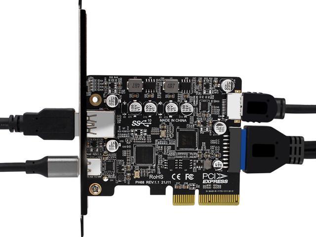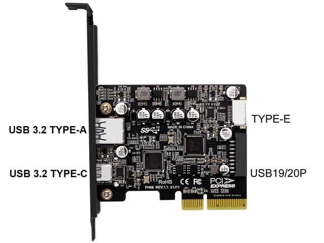 USB C 10Gbps PCIe 3.0 Card,PCI Express x4 to USB 3.2 Type-C and Type-A 10Gb/s with Type-E A Key & USB 3.0 20Pin Motherboard Header Expansion Card for Front Panel w/ Full-Profile & Low-Profile Bracket
