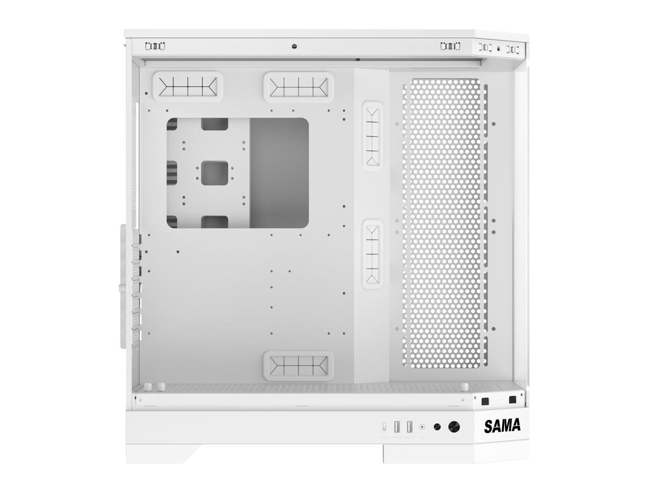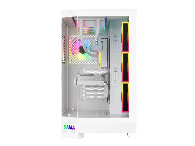 Sama 3021-White Dual USB3.0 and Type C Tempered Glass ATX Full Tower Gaming Computer Case w/ 4 x 120mm ARGB Fans (3 x MB Side, 1 x Rear) Pre-Installed