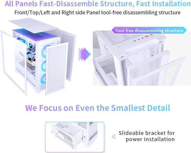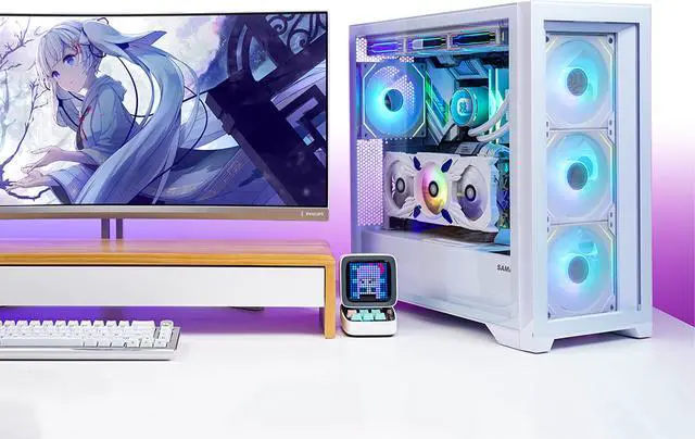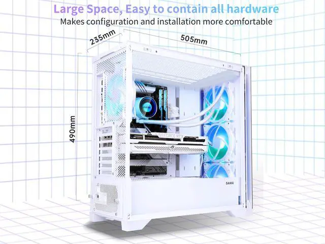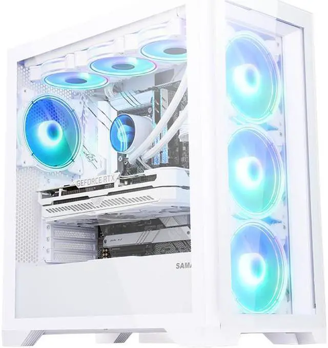 SAMA ATX Case 4502 Gaming Computer Case Unique Side Swivel Tempered Glass with Four ARGB Fans PC Case White