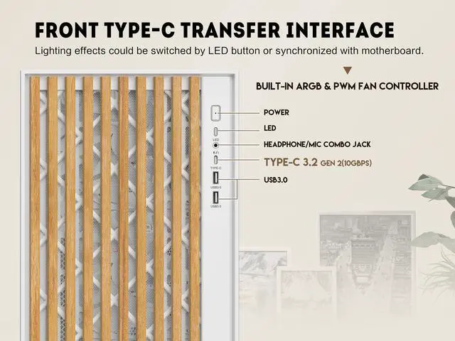 - Front I/O Ports: Includes 1 Type-C, 2 USB 3.0 ports, and an HD audio port for easy access.
