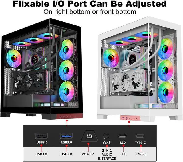 Robust Cooling Performance: Pre-installed with 4 fans, featuring a 4+4 port fan hub. The top supports a 360mm liquid cooler, and the case can accommodate up to 10 fans.