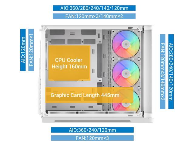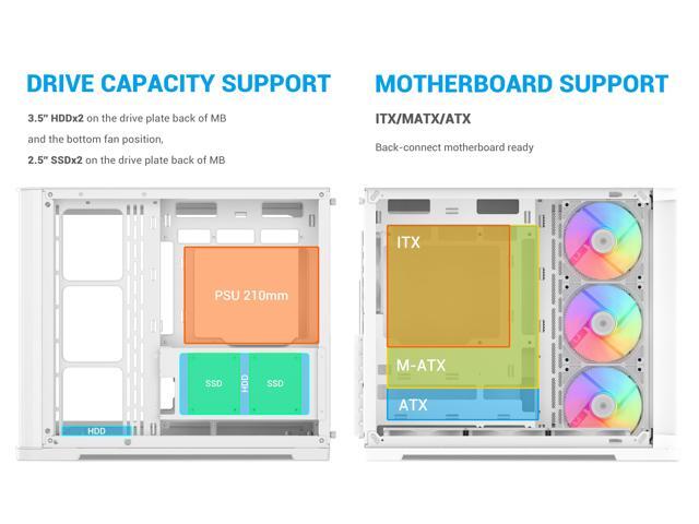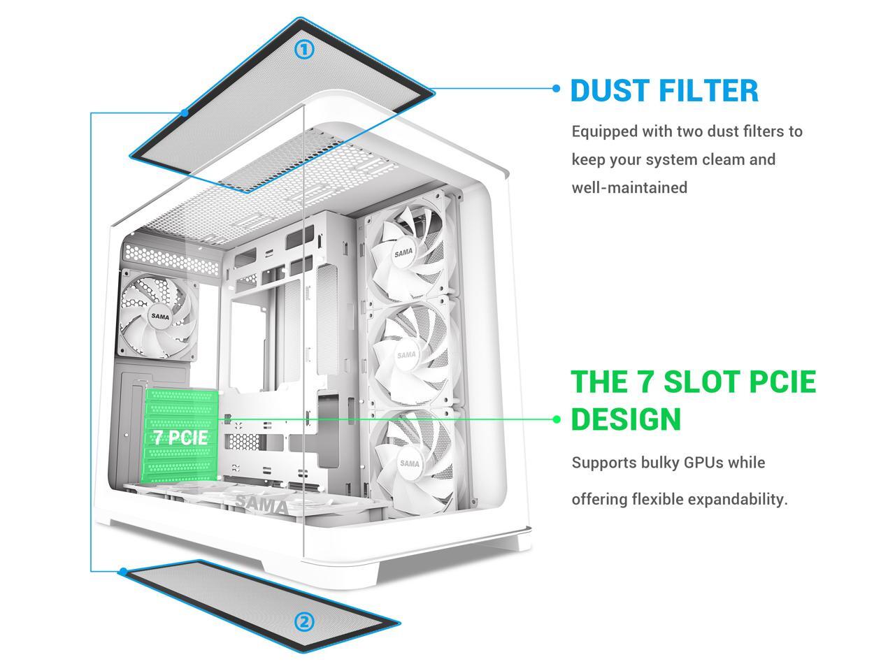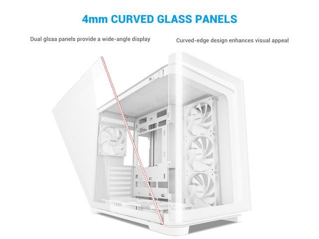 SAMA V60 PC Case, Mid-Tower Computer Case, A Curved Tempered Glass, 7 Pre-Installed ARGB PWM Fans and Fan Hub, USB Type-C, ATX/MATX/ITX Back-Connect Support, 360mm Liquid Cooler Compatible, White