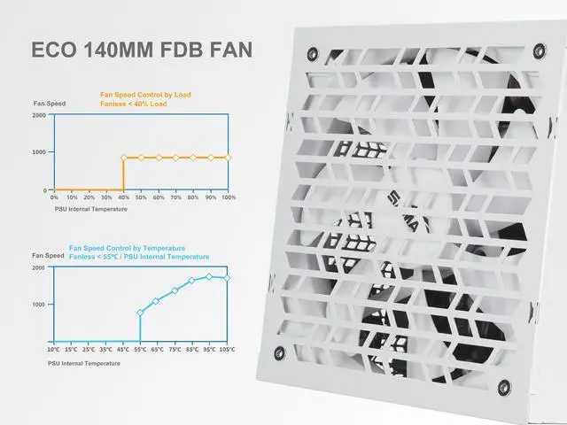 140mm FDB Fan - Silent operation under 40% load with ECO mode