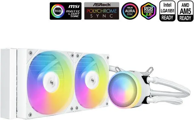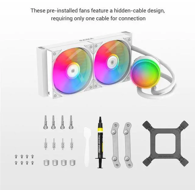 SAMA L40 CPU Liquid Cooler, 240mm AIO Cooler 4pin PWM Quiet Fans - FDB Bearings ARGB Water Cooling, White CPU Cooler Compatible LGA 1366/115X/2011/1200/1700 and AM4 AM5