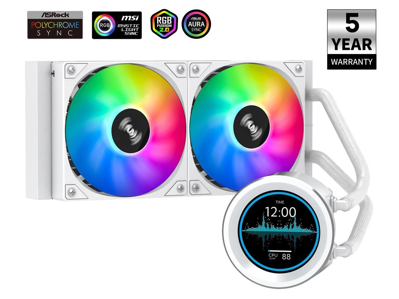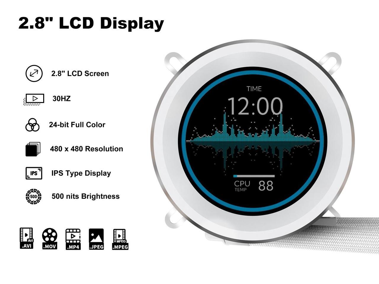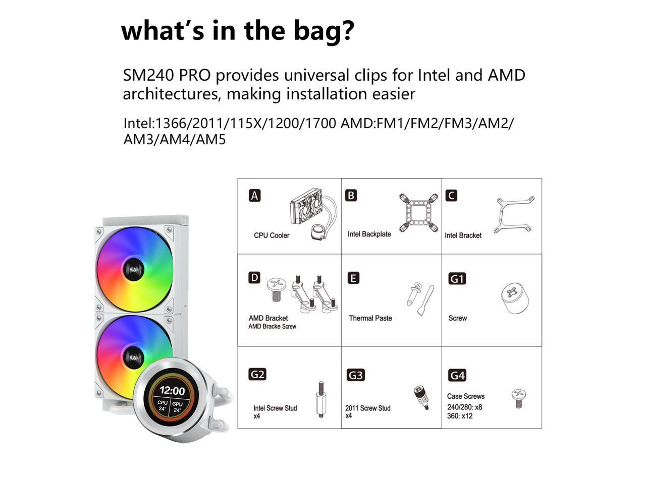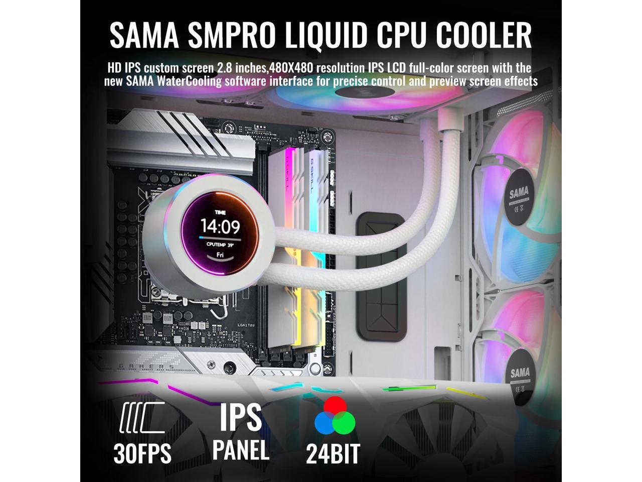 SAMA SM240 PRO White liquid Cooler 240mm ARGB AIO Radiator 2.8-inch LCD Video Temperature Display Screen CPU Cooler with PWM Silent Fans