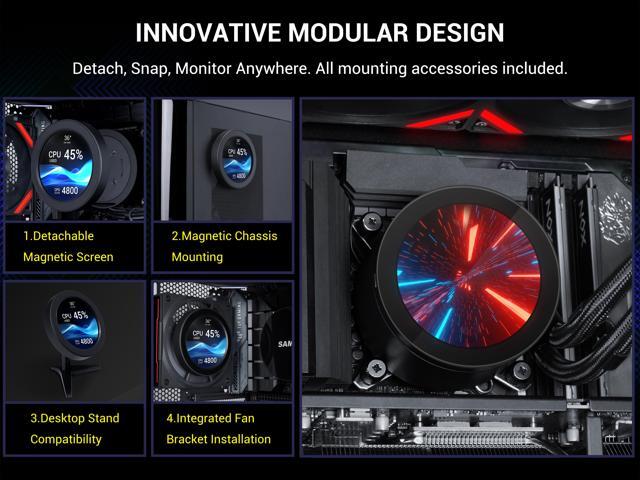 - Intelligent control: Equipped with a programmable intelligent control module, it supports PWM control, and can realize real-time control of CPU temperature, fan speed and RGB lighting effect through the built-in LCD screen.