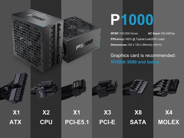 The SAMA P Series delivers 80 PLUS Platinum certified efficiency (over 92%) in a fully modular design, perfect for high-performance PCs. It exceeds ATX 3.1 standards, handling power spikes up to 235% of rated load for ultimate stability.