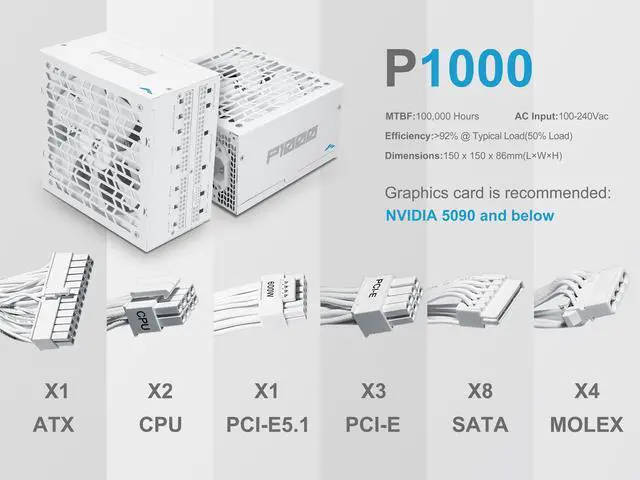 The SAMA P Series delivers 80 PLUS Platinum certified efficiency (over 92%) in a fully modular design, perfect for high-performance PCs. It exceeds ATX 3.1 standards, handling power spikes up to 235% of rated load for ultimate stability.