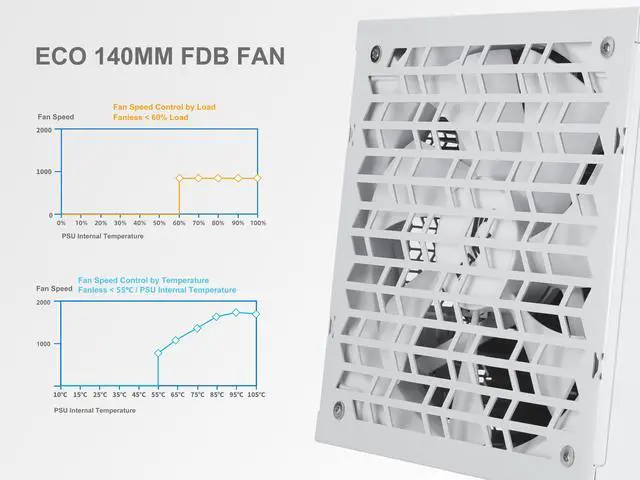 2. 140mm FDB fan with fanless mode below 60% load/55°C