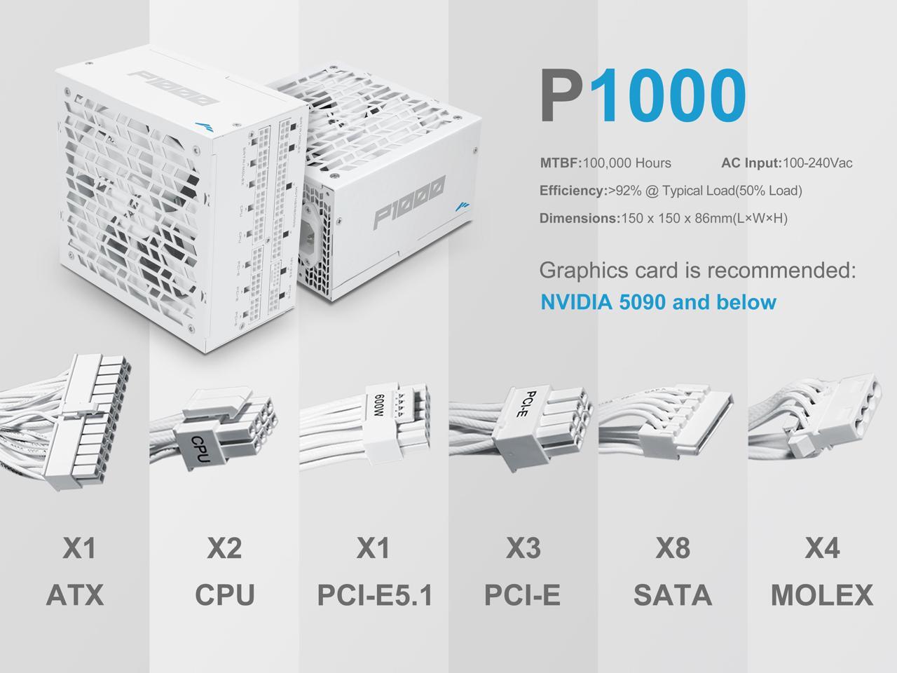 - 80 PLUS & Cybenetics Platinum Certified: Fully Power supply 1000W with 80 PLUS & Cybenetics Platinum certification, with 92% or higher efficiency under typical loads.
