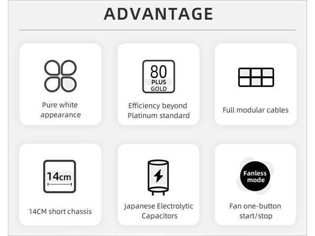 - 6.Full Voltage Power Supply 100 - 240 V 47 - 63 Hz.FDB Fan for ultra-quiet operation and increased lifespan.