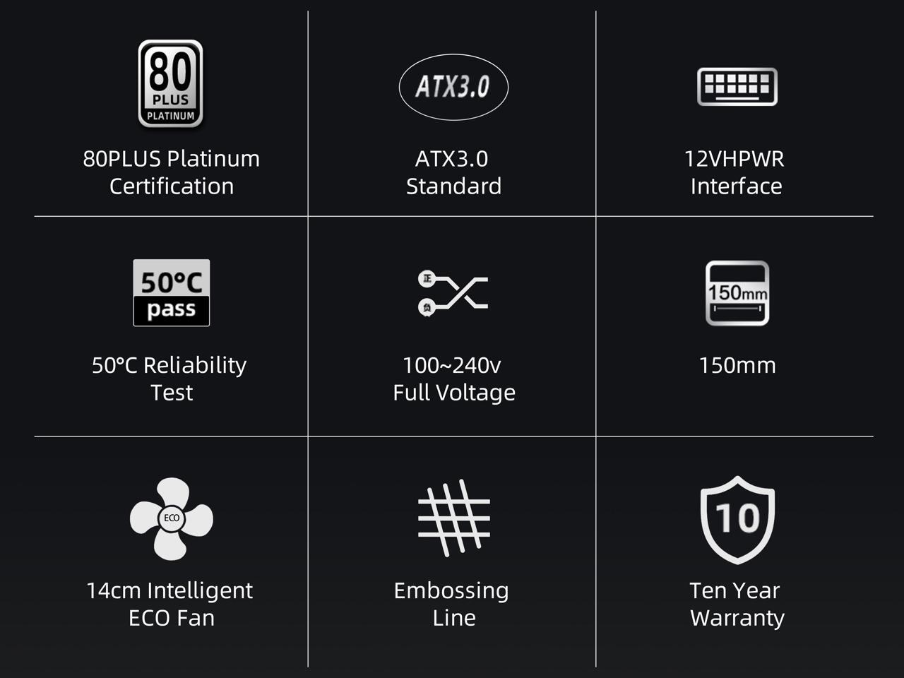 - 80PLUS Platinum Certification: This power supply has passed the 80PLUS Platinum certification, demonstrating its excellent energy-saving and efficient performance.