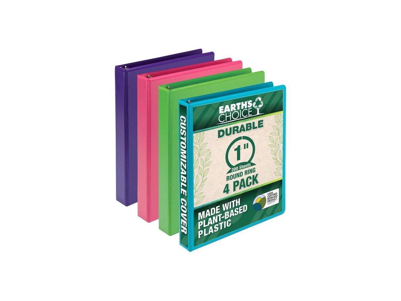 Samsill Earth's Choice Plant-Based Durable Binders 3 Round Ring Assorted Color 4 Pack (MP48639)