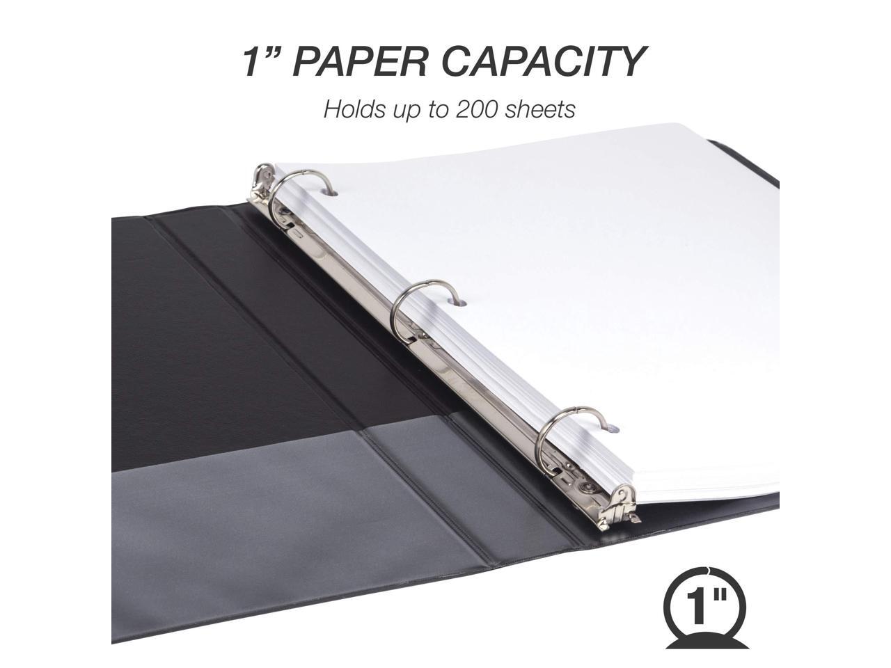 - Clear overlay with non-glare finish on front, back, and spine allows for complete customization of the binder with ease. Round rings mounted on back lid hold up to 200 sheets, allow pages to lay flat, reduce wear on punched pages and provide a clean looking spine.