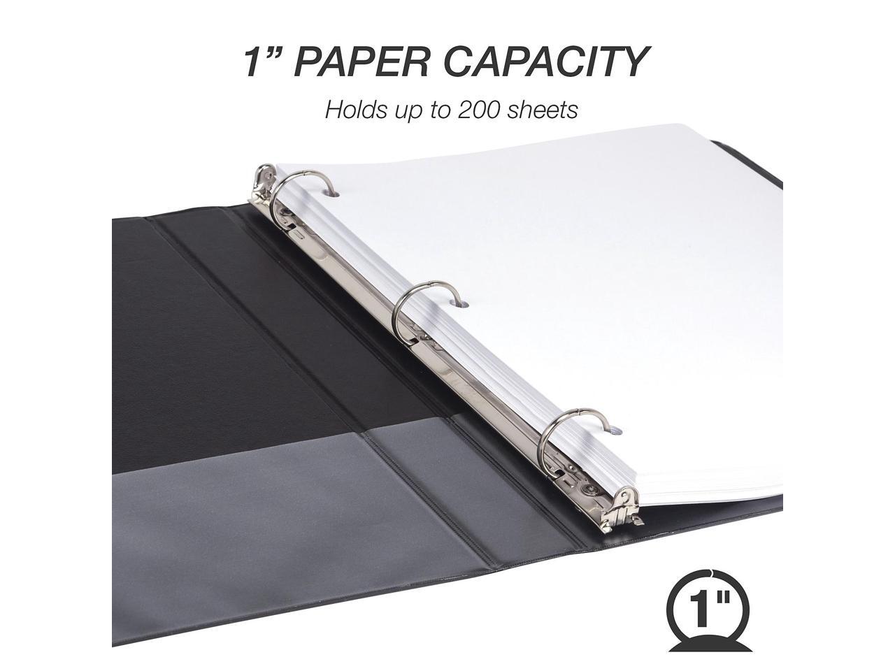 - 8 customizable loose-leaf 1 inch binders bulk packed to help tackle school, office, or home projects. Back lid mounted round rings leave a rivetless spine offering a great look for presentations or on a shelf. Manufactured in Fort Worth, Texas of domestic and imported materials.