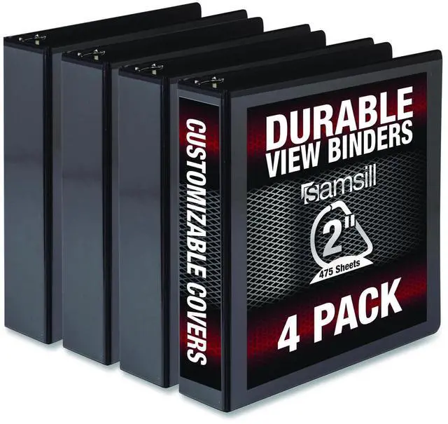 Samsill Durable 2" View D-Ring Binder, Black, Set of 4, MP46460