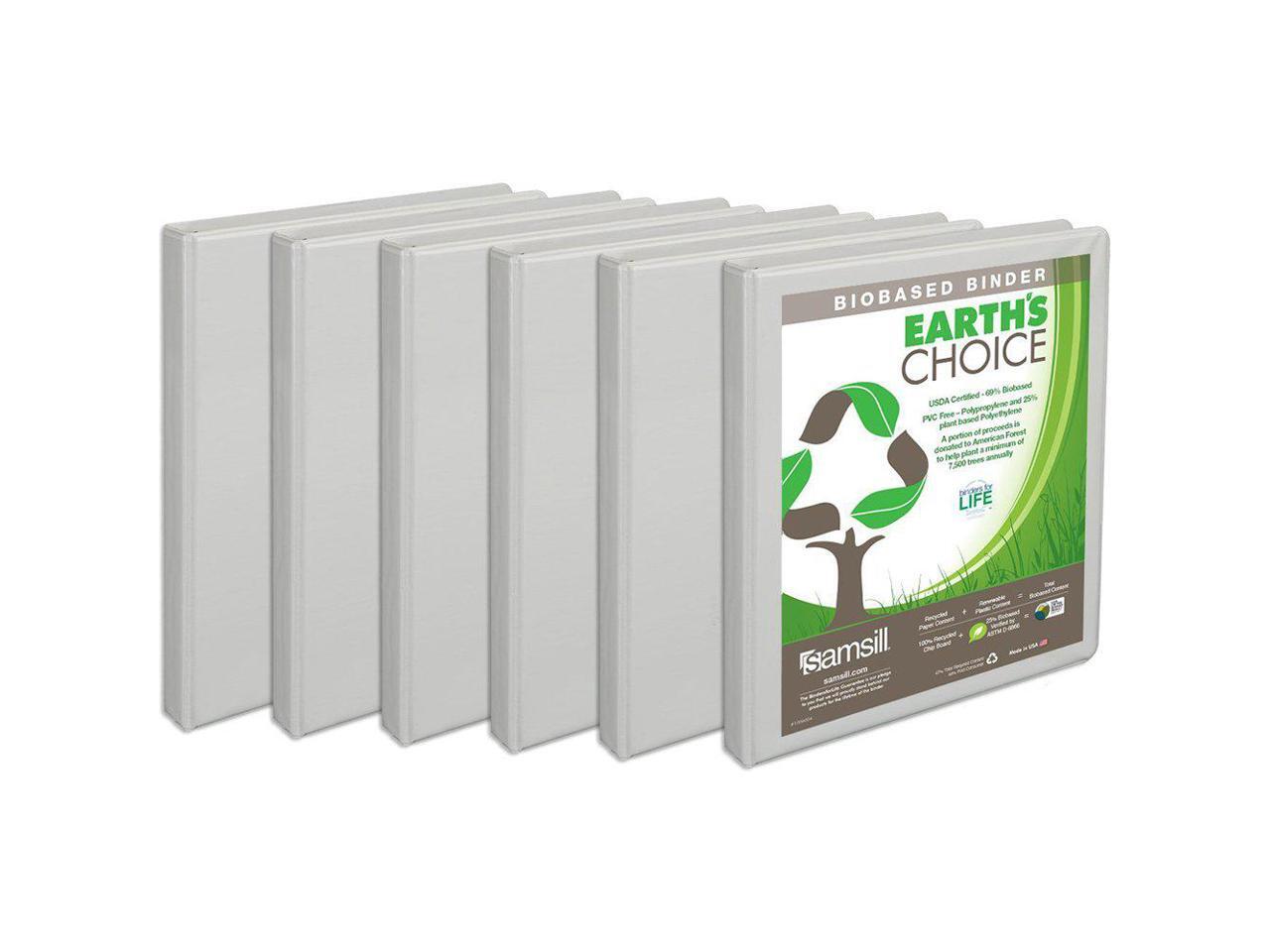 Samsill I08917 Earth's Choice View 1/2" Round 3-Ring Binder, White, 6/Pack