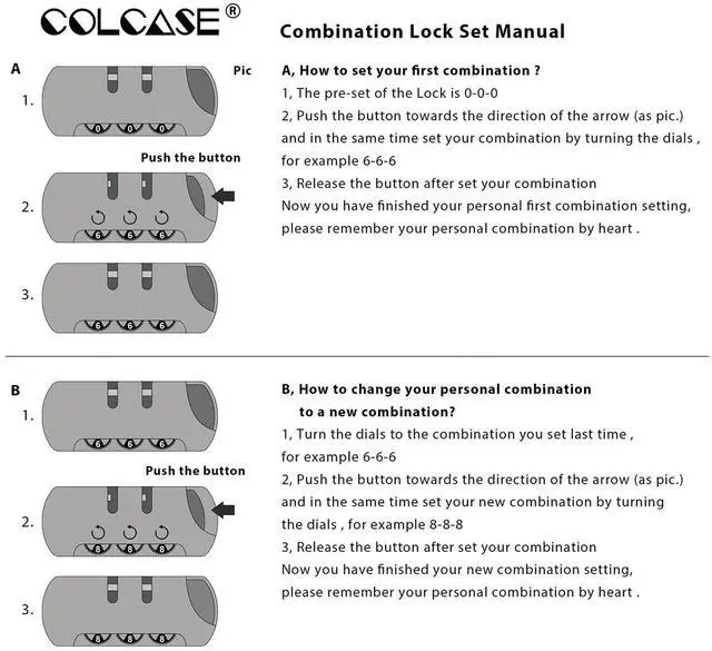 2. When setting a new password, keep the button pressed down and in the same time ensure that the new password is correctly dialed in place, keeping the same horizontal line, and then release the button to successfully set it