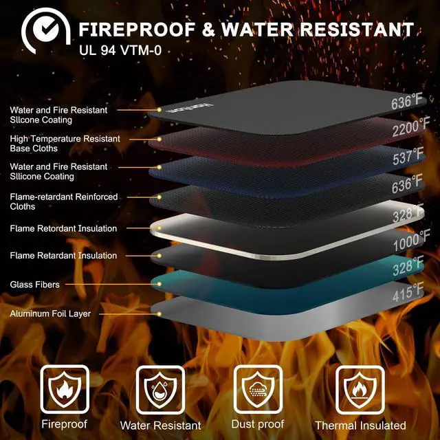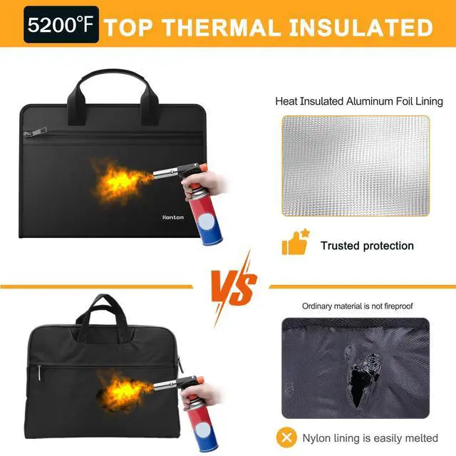 5200 Fireproof Safe Protection:important document organizer is made of high quality silicone and aluminium foil lining material which withstands high temperature up to 5200.Aluminium foil lining is easily melted under high temperature .Fireproof document organizer will offer your valuables the max fireproof safe protection . Meantime, the Sealed zippers are totally waterproof which can survive the spray of firefighter's hose on full blast, provides security seal and maximum protection for your documents