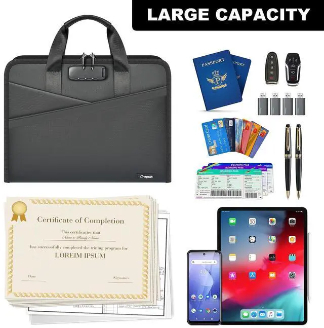 SECURE PRIVACY LOCK & ALL-IN-ONE STORAGE: Keep your private business files and family documents protected from curious eyes. The built-in 3-digit combination lock is easy to set. Beyond papers, this important document organizer includes 1 zipper pocket, 6 card slots, 4 mesh bags, and pen slots to neatly store USB drives, keys, tablets, and passports all in one place