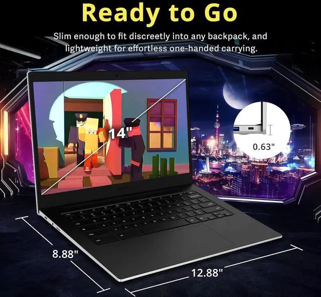 14" LED HD Laptop:The energy-efficient LED screen ensures comfortable viewing, enhancing your visual experience to the fullest.