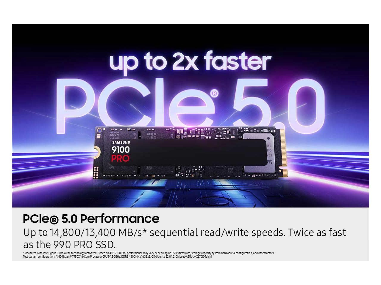 SAMSUNG SSD 9100 PRO 1TB, PCIe 5.0x4 M.2 2280, Seq. Read Speeds Up to 14,800MB/s, Best for AI Computing, Gaming, and Heavy Duty Workstations (MZ- VAP1T0B/AM)