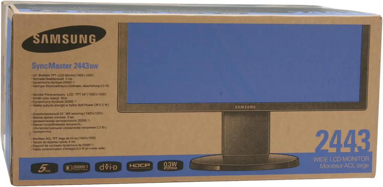 Ultra-High Dynamic Contrast RatioThe Samsung 2443BW's impressive 20000:1 dynamic contrast ratio and 300cd/m2 brightness ensure accurate color reproduction and sharp images even when displaying darker scenes and images for even more breathtaking games and full-motion video!