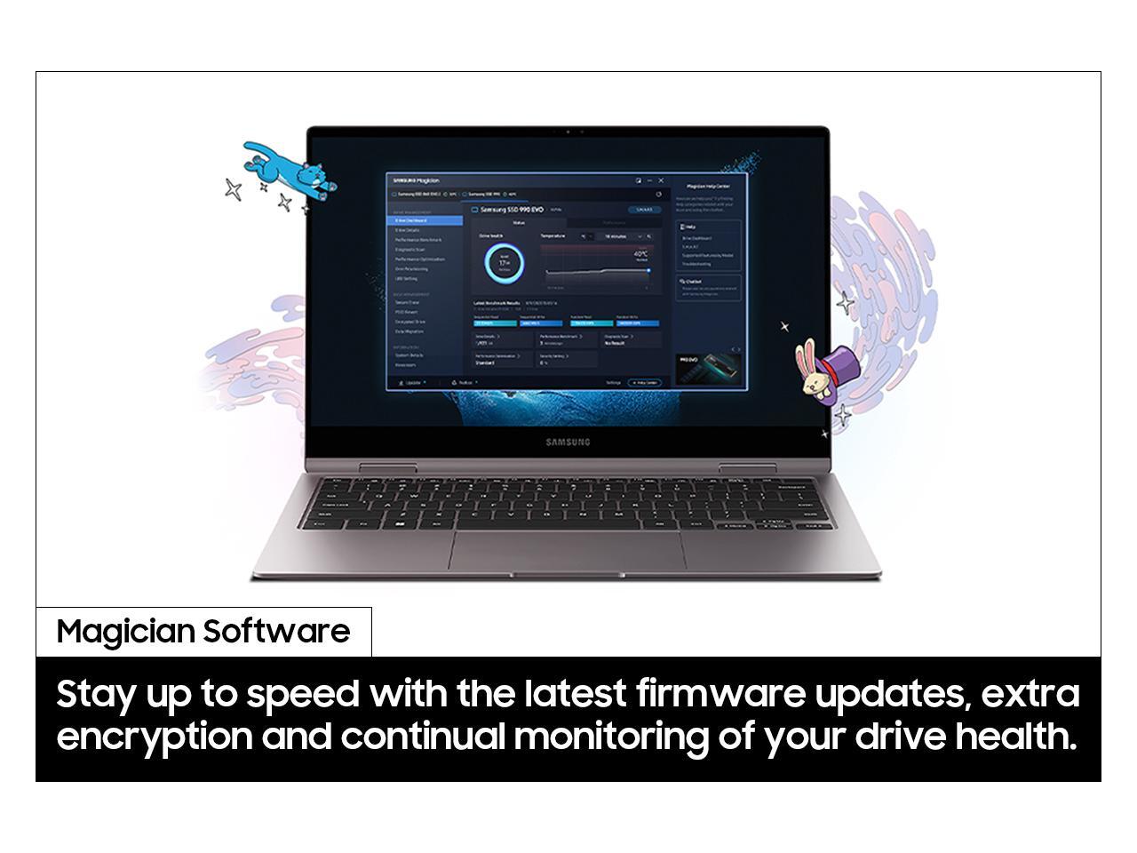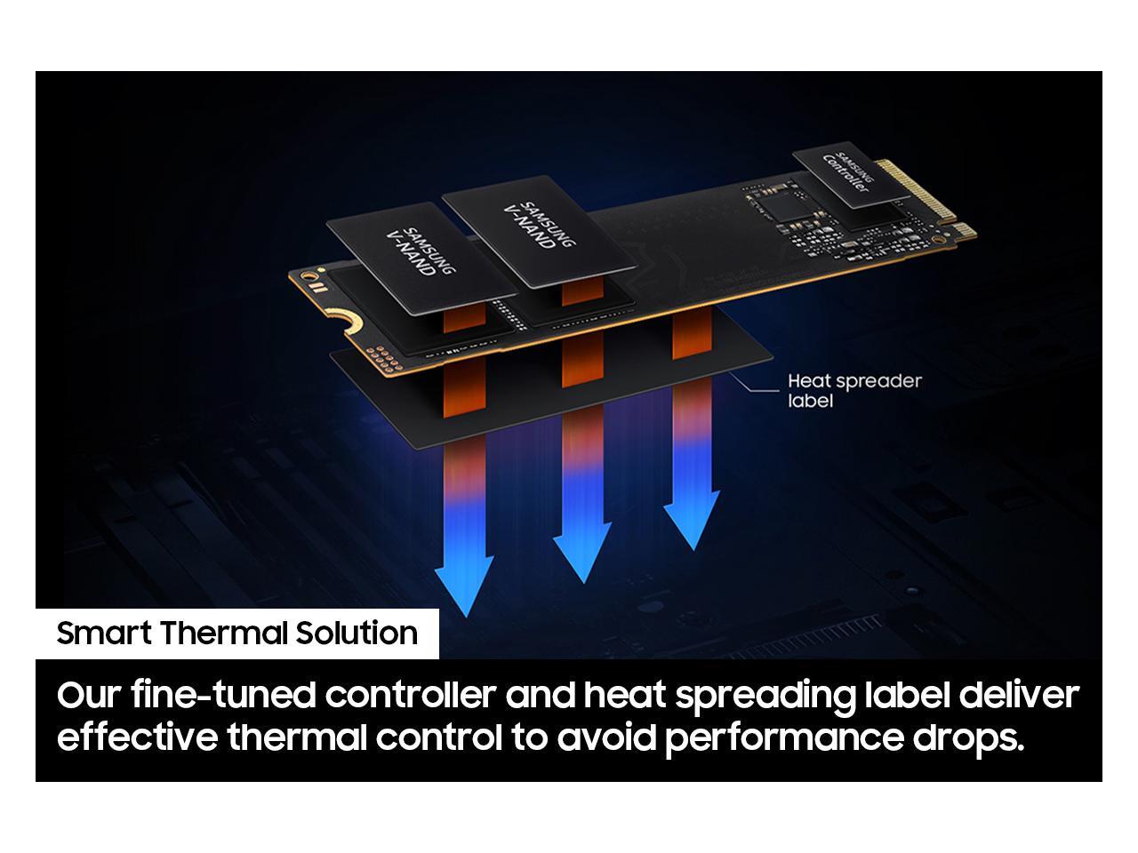 - SMART THERMAL CONTROL: Now you can ramp things up without overheating the system. Samsung’s fine tuned controller and heat spreading label deliver effective thermal control to avoid sudden performance drops mid project. It cools things down even when things are running high, so your hard earned checkpoints are saved.