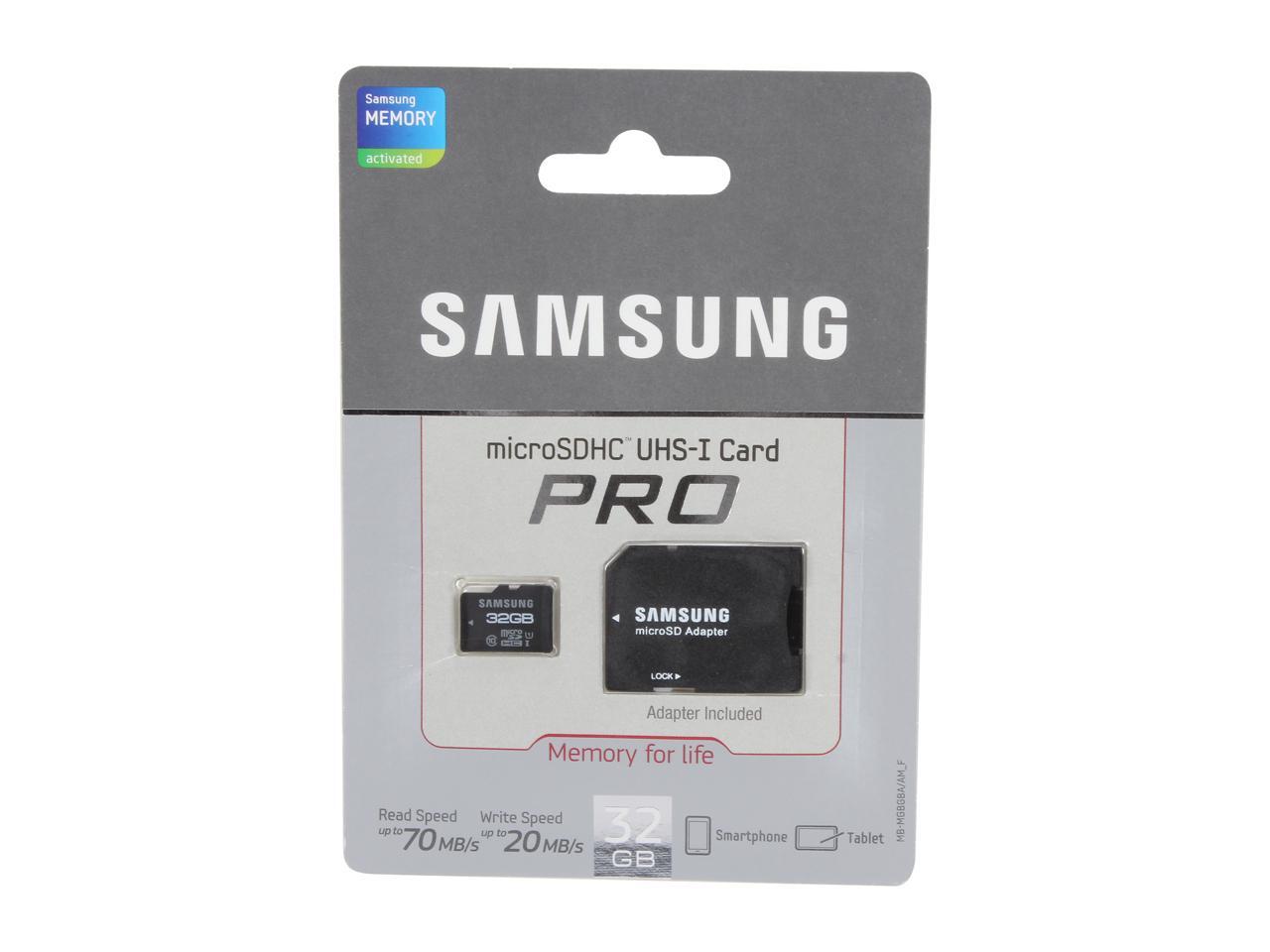 SAMSUNG 32GB microSDHC Flash Card with Adapter, Pro Class 10 (UHS-1), Up to 70MB/s Read & 20MB/s Write Speed Model MB-MGBGBA/AM