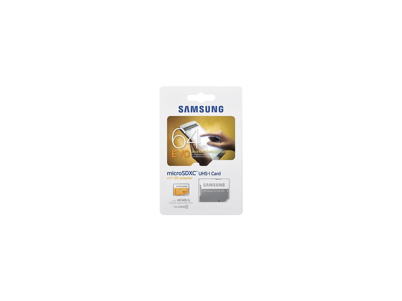 Samsung 64GB EVO microSDXC UHS-I/U1 Class 10 Memory Card with Adapter, Speed Up to 48MB/s (MB-MP64DA/AM) [Old Speed]
