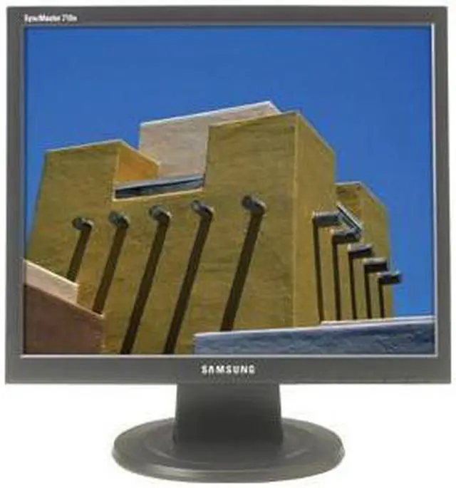 The Samsung SyncMaster 710N is a 17-inch TFT-LCD offering razor-sharpness and innovative features. An analog monitor with a 0.6" ultra-thin bezel and wall-mount capability, it delivers a 600:1 contrast ratio, 0.264mm pixel pitch, 1280 x 1024 resolution, scanning frequency of 30-81 KHz horizontal and 56-75 vertical, and 160/160 horizontal/vertical viewing angle.