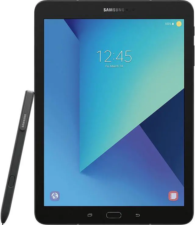 Samsung Galaxy Tab S3 9.7" - SM-T820. Brand New Includes One Year Warranty.. The Samsung Galaxy Tab S3 9.7" Bundle is a stylish multifunction 9.7" tablet powered by 2.15 GHz and 1.6 GHz Qualcomm APQ8096 Quad-core application processor and android™ 7.0 OS, with multi user support. This 9.7" tablet features super AMOLED display with a resolution of 2048 x 1536 and has 4 GB RAM... The Galaxy Tab S3 supports 32GB internal memory expandable up to 256GB microSD external memory. The revolutionary S Pen has true-to-life pressure and angle sensitivity with the intelligence to translate, magnify, navigate and create with a full pallete of brush and pen types.