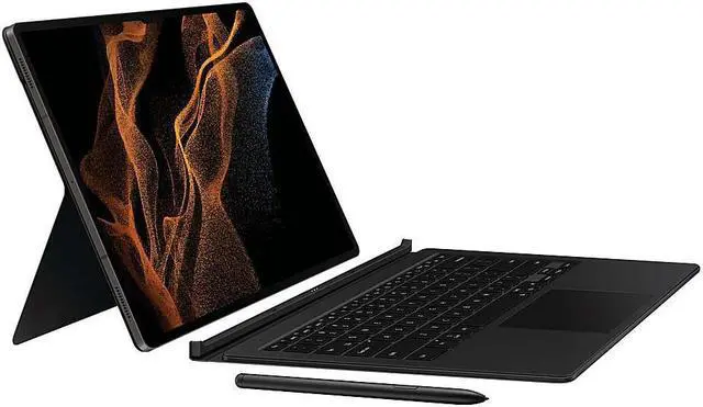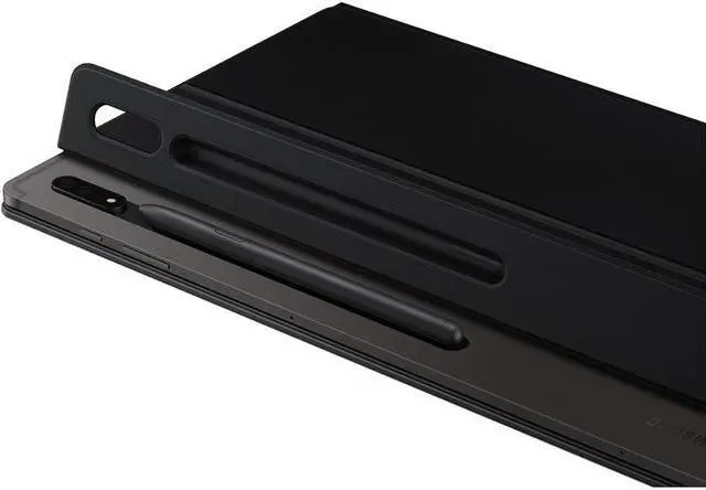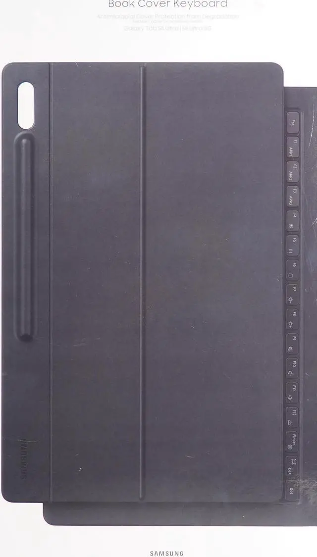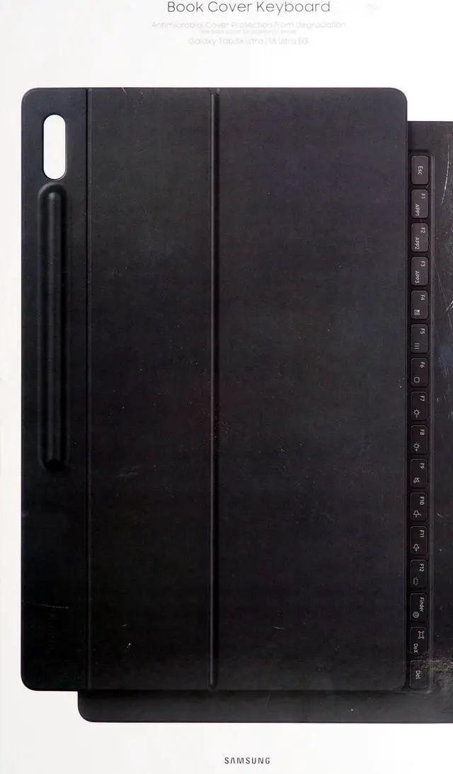 Samsung Galaxy Tab S8 Ultra Book Cover Keyboard EF-DX900UBEGUJ Black. Attach a protective cover that doubles as a keyboard to your Galaxy Tab S8 Ultra, Protect your tablet, it has Galaxy Tab's full-sized backlit keyboard, wide trackpad, and embedded S Pen holder so you can stay in creative mode anywhere you go. This Keyboard is sturdy and ultra-lightweight to attach easily to your Tab S8 Ultra. It comes in two pieces, one piece connects magnetically to the back of the tablet for use as a kickstand that holds the tablet upright for hands-free viewing- the other holds the keyboard and trackpad that allow you to work and type on your tablet.