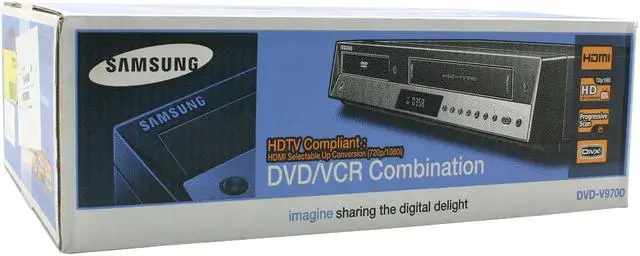 This versatile unit plays both DVD discs and VHS tapes, delivering crisp pictures and high-quality sound. Samsung's DVDV9700 includes a 4-head Hi-Fi VCR with the added visual clarity of Progressive scan output, and allows MP3, JPEG and WMA playback.