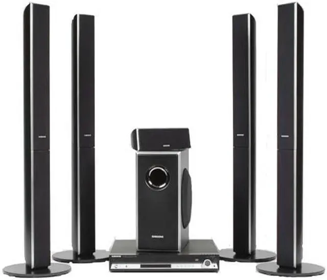 Imagine the allure of 1000 watts of audio power. Samsung's elegant HT-TQ85 Home Theater Audio System offers industry-leading power through four sleek tower speakers and a center speaker, enhanced by Dolby Digital and Dolby Pro Logic decoders. The HT-TQ85 offers the convenience of a 5 disc changer, as well as improved USB host play which lets you plug and play your portable digital devices without loading software.