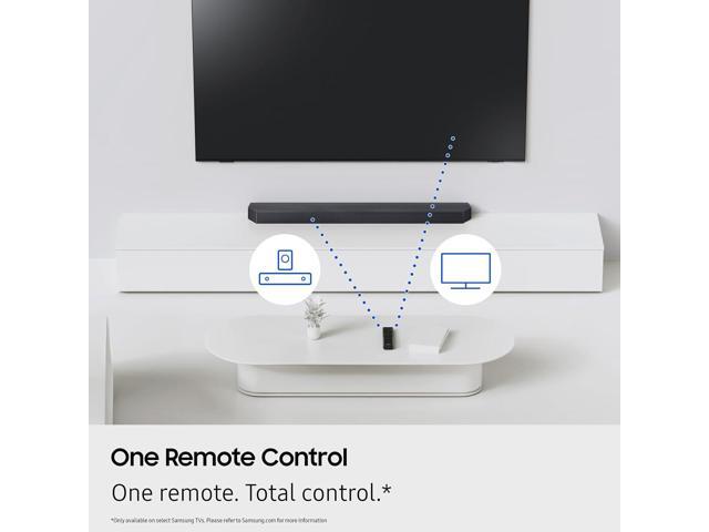 - ONE REMOTE. TOTAL CONTROL: Use your Samsung TV remote to control key soundbar functions, including power, volume and sound effects. You can access everything you need with the single remote. Enjoy full control and have one less thing to keep track of.*