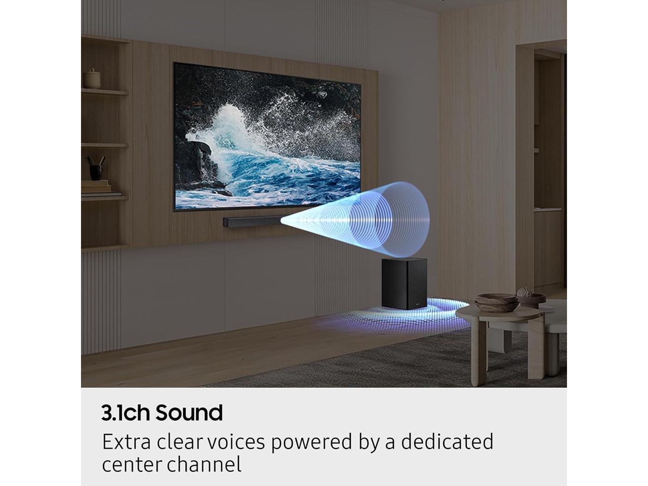 - EXTRA CLEAR VOICES POWERED BY A DEDICATED CENTER: Hear every word with a dedicated, built-in center channel speaker that enhances dialogue clarity. Plus, feel the power of rumbling bass with a wireless subwoofer.