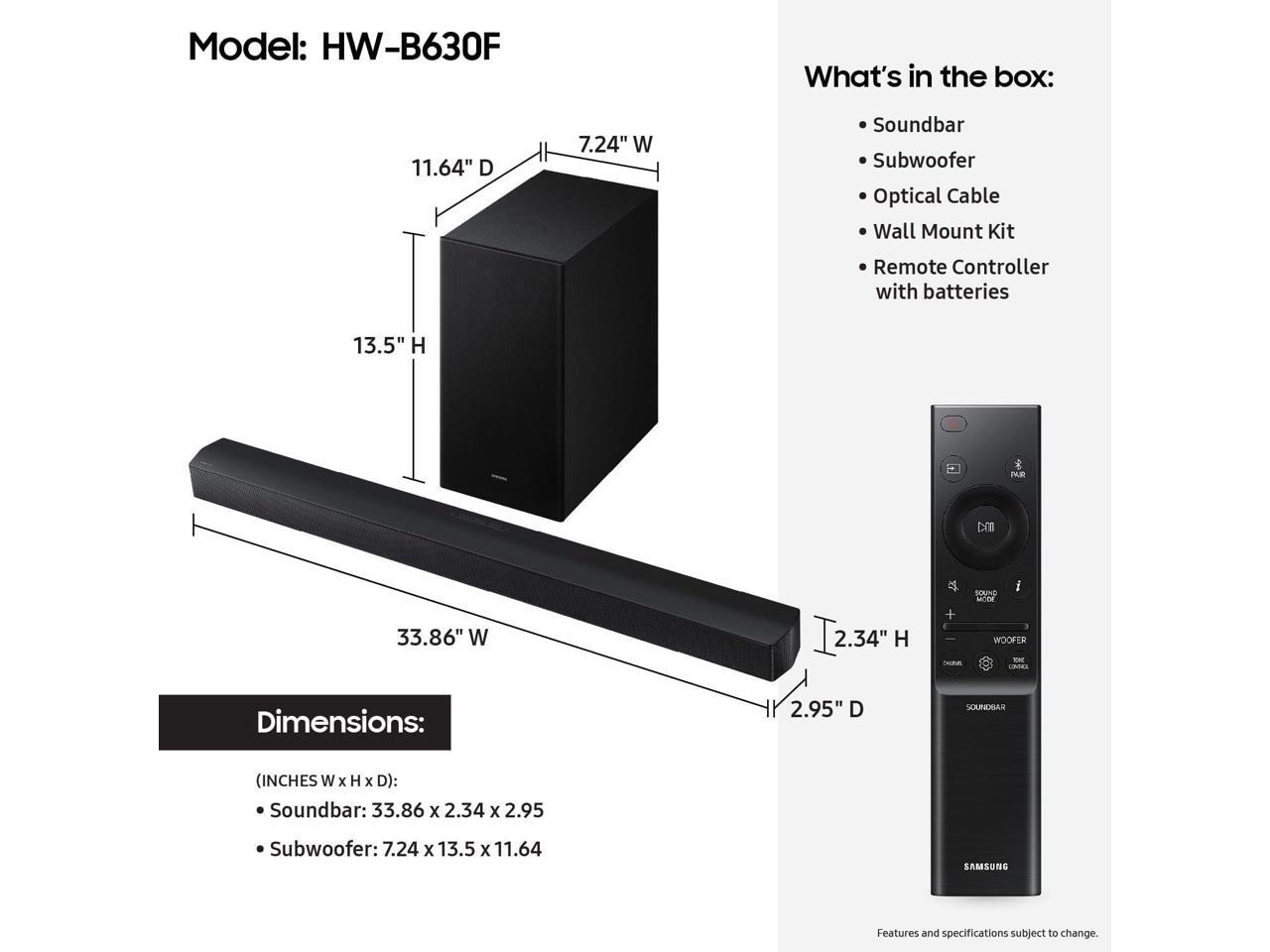 Samsung B-Series Soundbar HW-B630F 3.1 ch DTS Virtual:X Soundbar with Subwoofer (2025 Model) One Remote Control, Voice Enhance Mode, Adaptive Sound