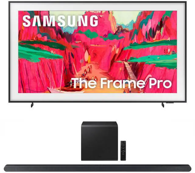This bundle includes: (1) Samsung LS03FWFXZA 4K Neo TV with your choice of a Samsung Soundbar and Amber Screen Cleaner